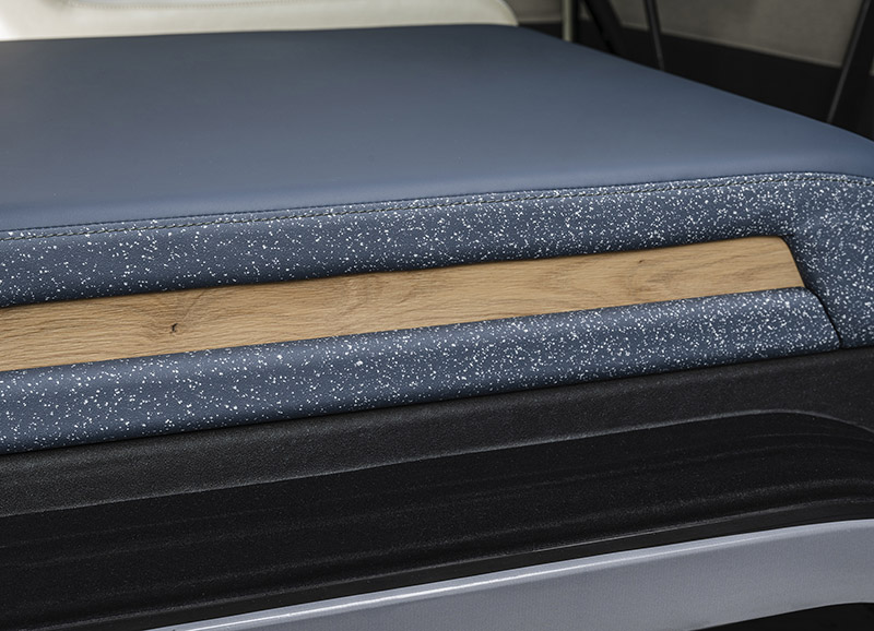 其中車內多處採用稱為Staynu的新錶面處裡技術,除了耐髒也以保養耐用,隨時都可以保持全新的狀態,其中駕駛座椅面便用此材質,另外,還有其他部分應用了laif技術,具有出色的透氣性與絕佳觸感,可有助於降溫與接觸溫度控制,且有著類似真皮的質感與觸感,卻不需要犧牲動物來獲取皮革。