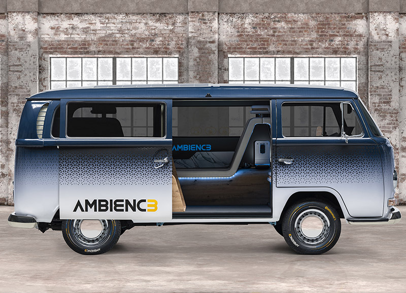 近幾年以經典老車為平台,打造電動車或下一世代移動概念車越來越普遍,知名的Continental馬牌輪胎,就在慕尼黑舉行的IAA Mobility德國國際汽車及智慧移動大展中,以經典的VW T2打造一輛稱為AMBIENC3概念車,擘劃未來移動新概念。