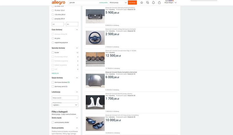 這家名為Allegro的波蘭汽車零件網站這幾天已上架Maserati Grecale的部分零件,有頭尾燈、前保桿水箱罩、方向盤、輪圈、引擎蓋、葉子板等項目,大致上外觀的重點辨識特徵已可提前猜測,水箱罩部分依舊採Maserati經典的直瀑式造型,兩旁的側進風口則以網格蜂巢式呈現,風格上仍充滿濃濃的家族特色,直立長方形的頭燈與測試車相去不遠,尾燈也與小改款Lavante的旋鏢式尾燈有著高度連結性,另外方向盤造型也變成與新世代超跑MC20類似的平底款式,上面還附有調整旋鈕與多功能按鍵,與舊款方向盤相比更多了些跑格感受。