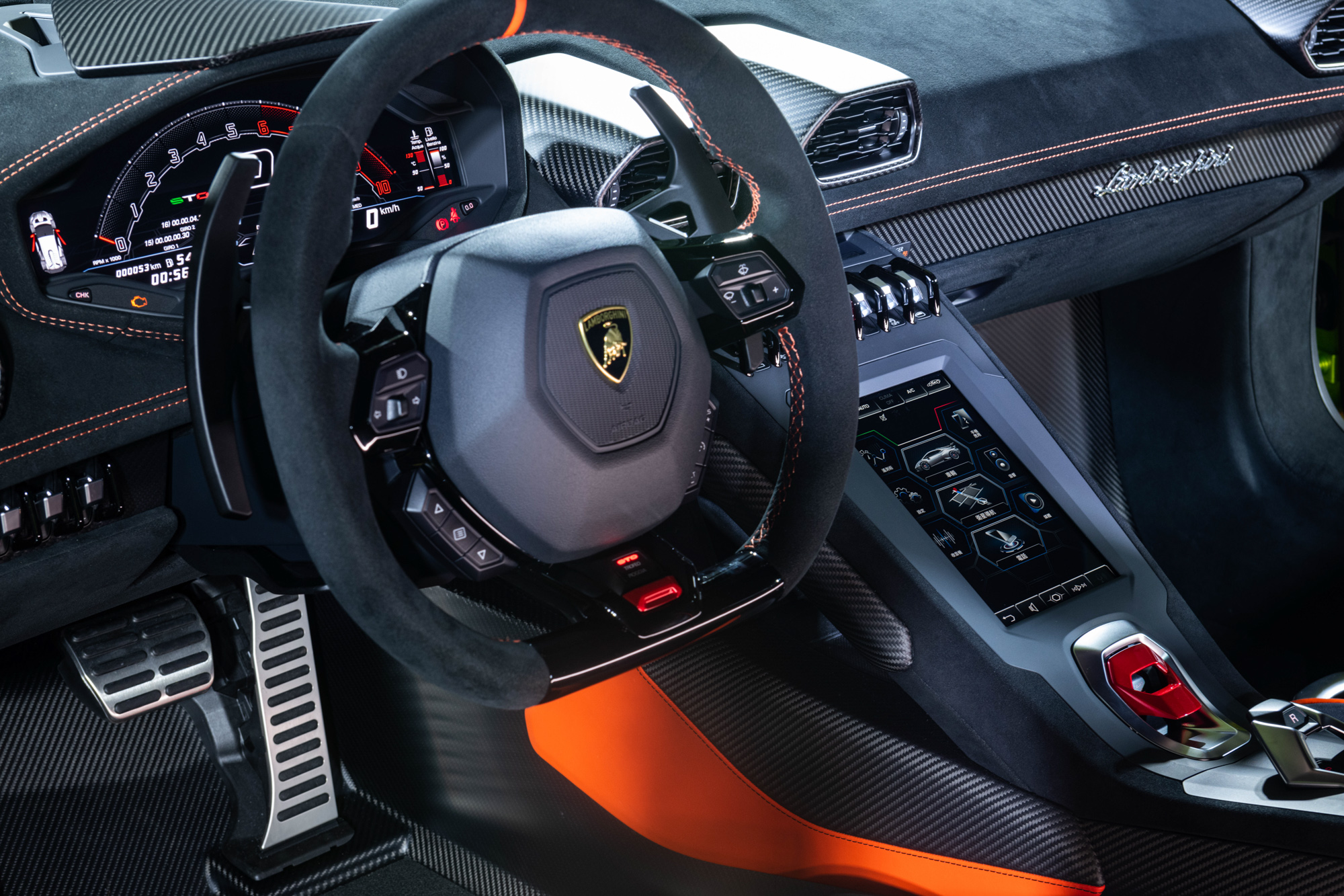 Huracán STO以STO、Trofeo和Pioggia三種全新駕駛模式展現熱血純粹的賽車精神,並延續首見於 Huracán EVO 車款的LDVI(Lamborghini Dinamica Veicolo Integrata)車身動態整合系統,可預測並依據駕駛行為和需求,即時調控車輛各項動態表現;駕駛者僅需透過方向盤下方的ANIMA動態模式選擇器即時切換,即可輕鬆調整三種不同模式:STO模式適用於一般公路駕駛並提供彎道駕控的無限樂趣;啟動專供熱血車手挑戰賽道乾地駕馭極限的Trofeo模式,LDVI中央控制系統可確保在乾燥路面的激烈操駕中,車輛的扭力分配及循跡控制皆發揮最佳效能,搭以全新BTM(Brake Temperature Monitoring)煞車溫度監測系統,隨時隨地掌握煞車系統工作溫度狀態及耗損管理,讓駕駛者無論是在直線加速亦或是挑戰單圈計時成績,皆能達到出類拔萃的傑出表現。Pioggia模式,如同其義大利文含意,專為雨天探索濕地駕駛樂趣而設,針對扭力分配、ABS系統、懸吊和循跡控制等特別調校,配載的後輪轉向輔助及LDVI系統提供精準預測與設定調節,確保在不同抓地力條件的路面仍有出色的操駕表現。