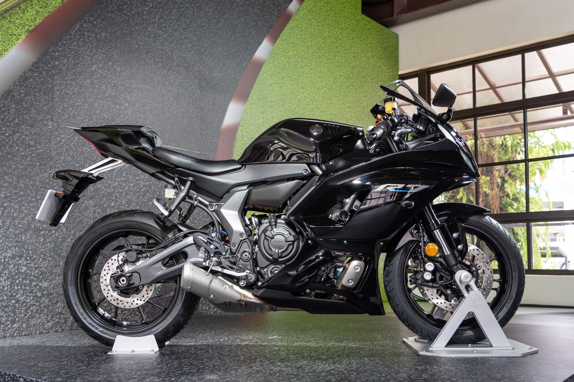 YZF-R7 研發目標乃是期望讓所有騎士皆可盡情發揮騎乘能力的頂尖運動車款,首先在外觀部分,承襲新世代 R 系列的家族外觀,不僅帶來強烈的視覺感受,更考量高速行駛下所需的空氣力學設計,讓騎士完整感受車輛性能。LED 頭燈位置設計在傳統車頭進氣口處,並有相當纖細比例,搭配新式油箱罩、運動化座椅,車尾更以空氣力學優化為打造宗旨。