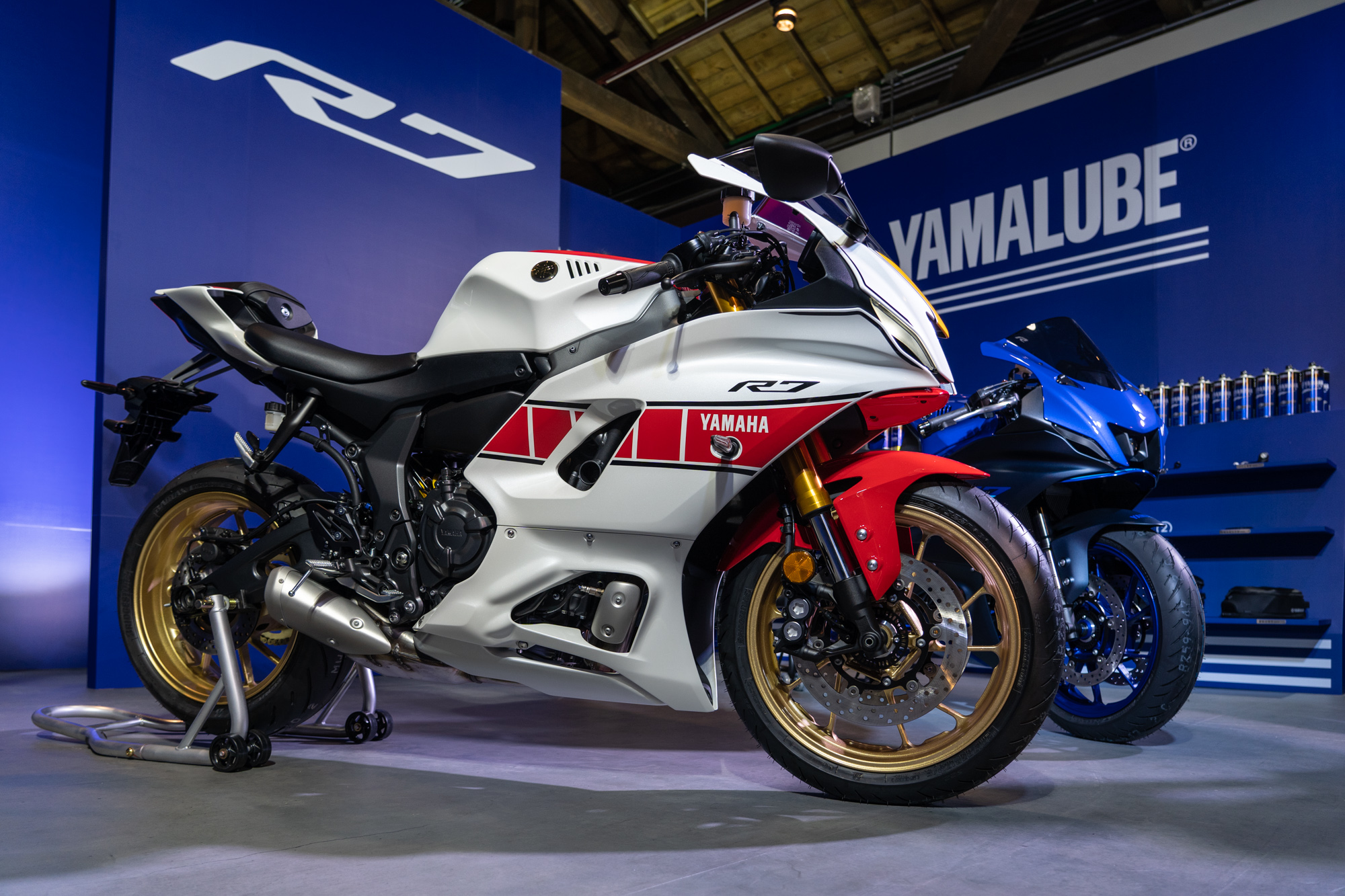 於 7 月底宣告 39.8 萬建議售價的 Yamaha YZF-R7 車型,終於選擇在 9 月 17 日當天正式發表,現場更有神秘嘉賓「Workd GP 60週年紀念車型」,以 YZF-R7 車型為基礎並繪上專屬的 Sppd Block 經典配色,建議售價為 41.8 萬,限量 30 輛。發表會現場的台北市南港區「瓶蓋工廠台北製造所」同時於 9/18~19 日舉辦「YZF-R7」展示會,現場除了展示全新「YZF-R7」,也同步展出 R 系列家族成員「YZF-R3」、「YZF-R15」及神秘車款,帶給車迷「R/World」全體驗。