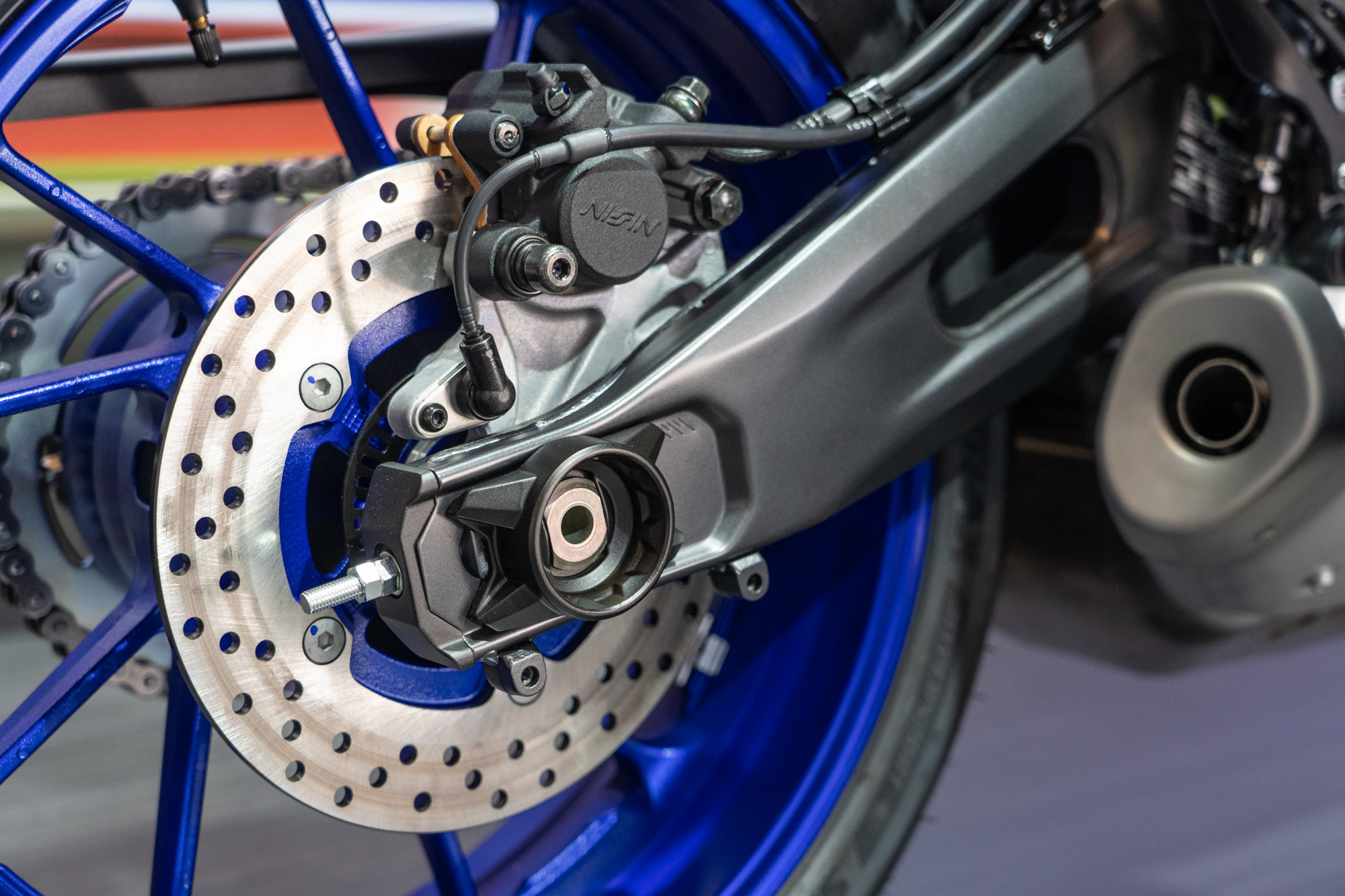 YZF-R7立基於剛性平衡調整的輕量車架,導入 KYB 41mm 全可調倒立式前叉,與全新設計的多連桿後避震器;前煞車部分以 298mm 直徑雙碟盤結合四輻射卡鉗,搭配 Brembo 直推總泵。