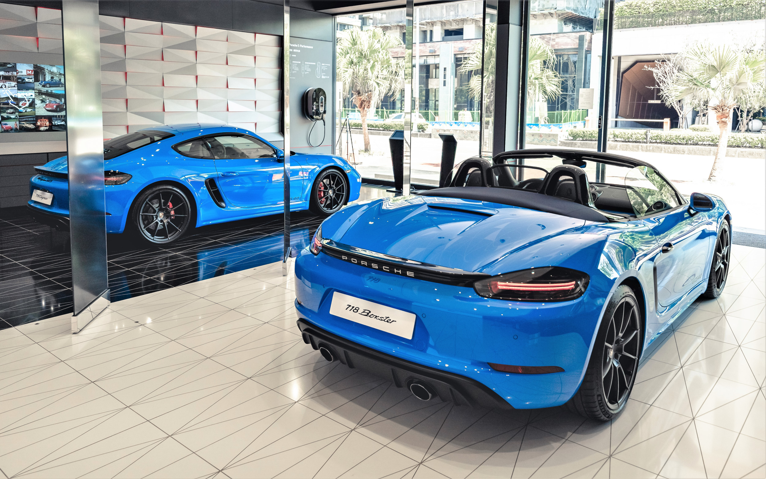 新竹保時捷都會概念店自去年第三季進駐新竹後正式滿周年,是全球第一座以「黑立方」的理念所設計的獨棟建築。作為其中一個能與台灣保時捷原廠攜手創造2021上半年銷售佳績的新竹經銷商,全球最大豪車經銷商之一利星行集團旗下智華汽車感謝這一年來車主車迷朋友的支持,在重要的里程碑時刻,新竹保時捷都會概念店特別展出一部限量周年紀念的 Porsche 718 Boxster GTS 4.0,最大亮點在於車身顏色與今年2月發表的 911 GT3 相同,為極具鮮明的搶眼新色青鯊藍 Shark Blue,以及客製化周年紀念車門檻。