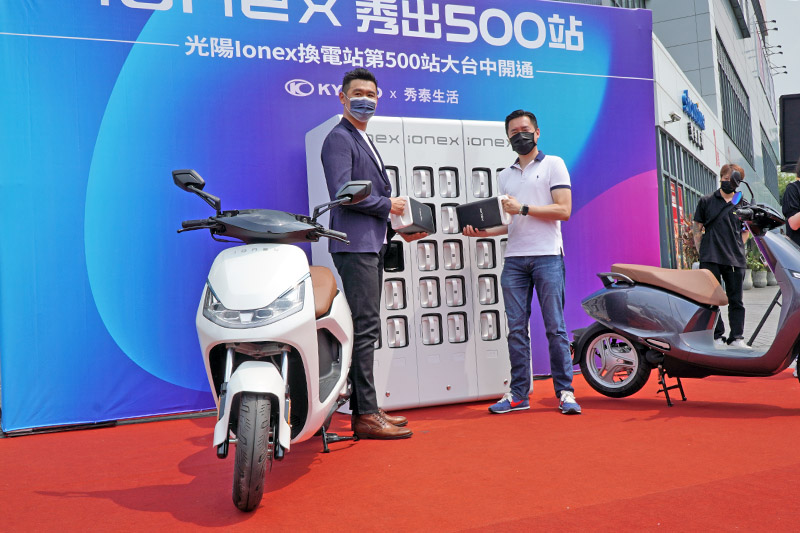 積極布局電動機車的台灣龍頭機車廠Kymco,繼日前宣布提供「尊榮換電」服務的同時,並未停下換電站的建置,於9月28日於台中開通第500座Ionex 3.0電池交換站,並將以一天4~7站的布建速度,力求至2021年底前建置完成1,000站以上電池交換站。