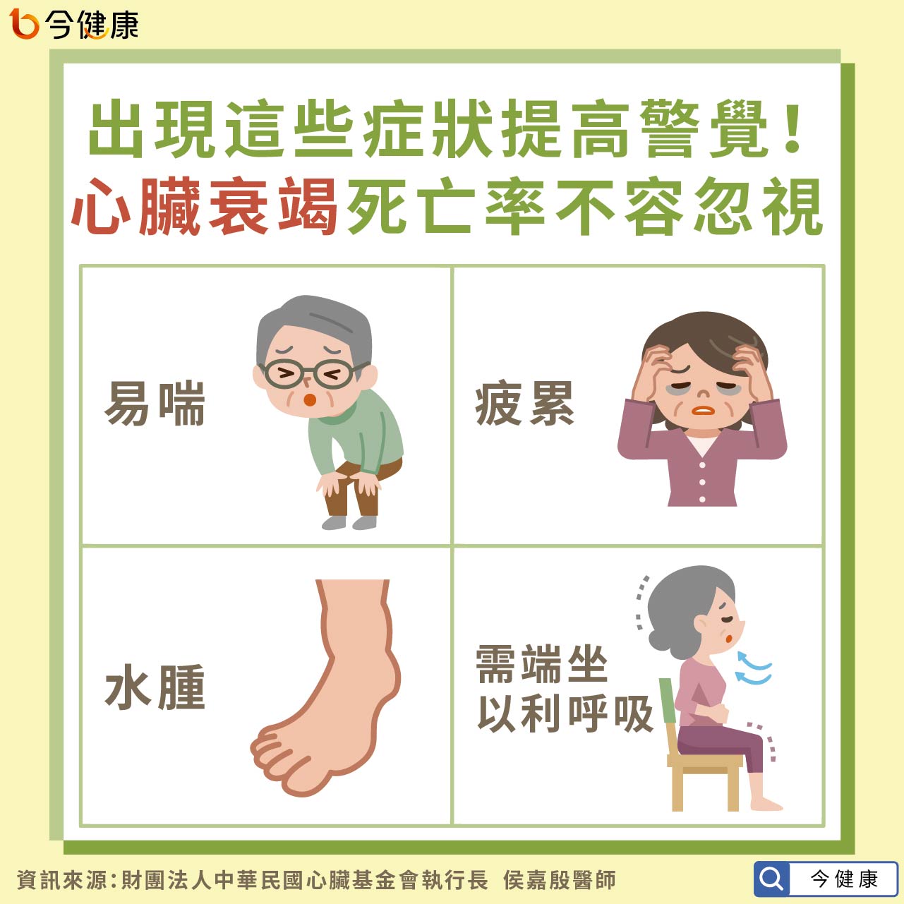 財團法人中華民國心臟基金會執行長侯嘉殷醫師說明,人體的心臟就像馬達,負責推動血液到全身幫助器官運轉,若馬達開始疲乏,心臟缺乏彈力,就是心臟衰竭(心臟無力)。心臟衰竭患者在初期時,常會出現喘、疲累、水腫甚至需要端坐呼吸等,特別是年長者出現這些症狀時,多誤以為只是老化造成,高達9成的患者無法早期警覺到心衰竭相關症狀,往往錯失黃金治療時間,直到緊急送醫後,才被確診為心臟衰竭。當被診斷為心臟衰竭,5年內死亡率逼近50%,比許多癌症更致命,嚴重性不容忽視。
