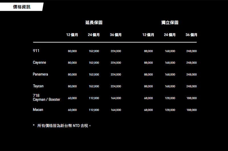Porsche Approved Warranty保時捷認證保固服務包括: