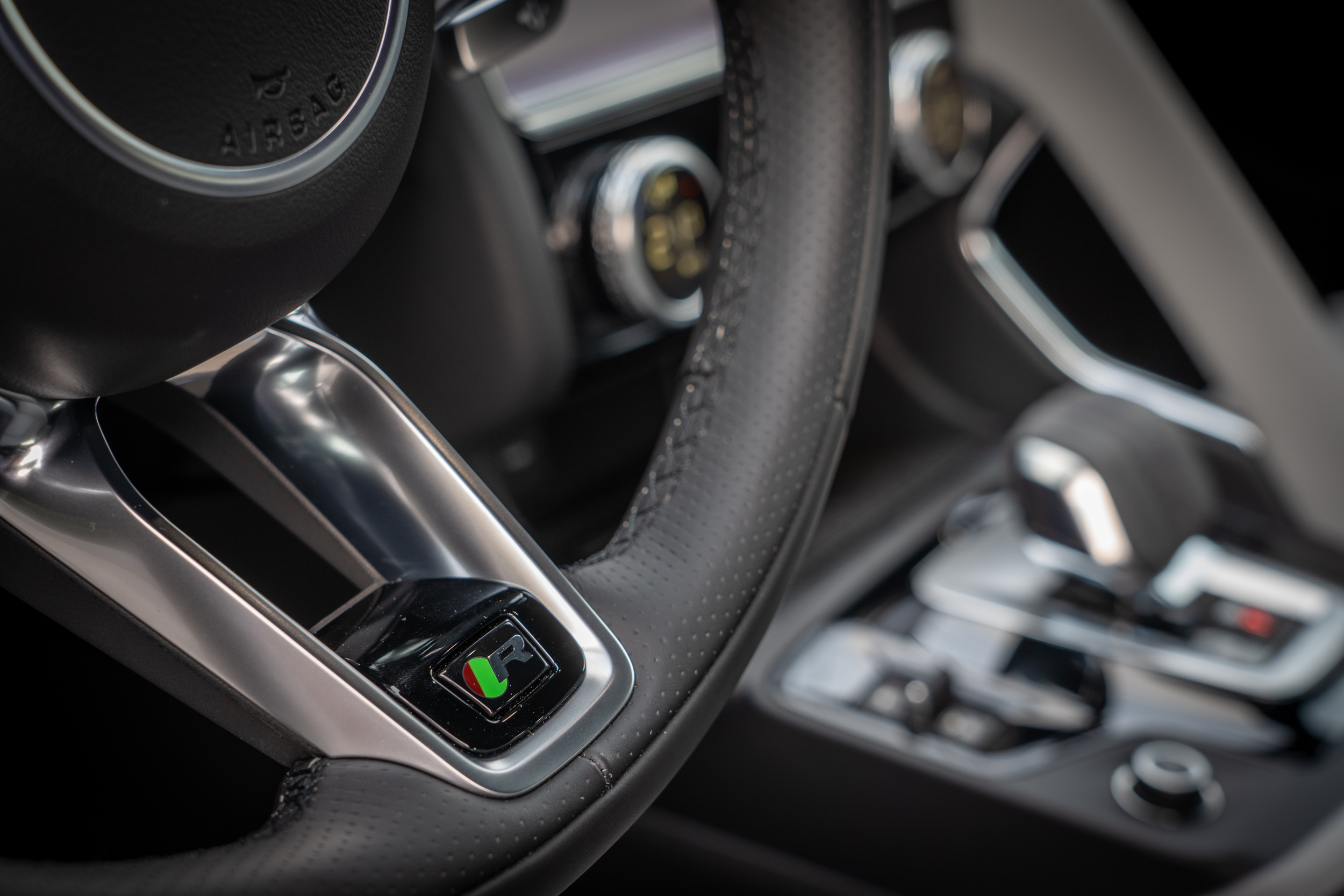 附上換檔撥片,鍍鉻材質與鋼琴烤漆飾板的運用很出色。