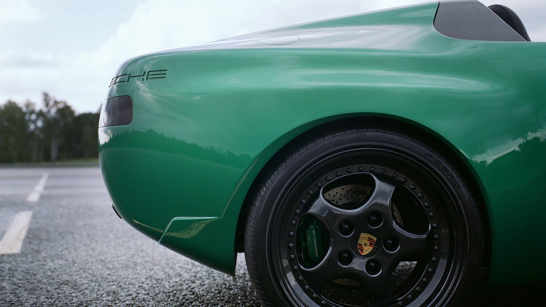 拆除了 968 原屬的車頂後,L’ART 搖身一變成為了一輛雙座敞篷跑車。Kar 與其團隊特別為此項計畫設計出了一款色澤獨具的綠色。車尾處以經典保時捷 Speedster 作為靈感發想,經過重新設計後的尾燈有著「KAR」字樣,與在 L'Art 墨鏡上的字樣相同,構成另一個搶眼焦點。