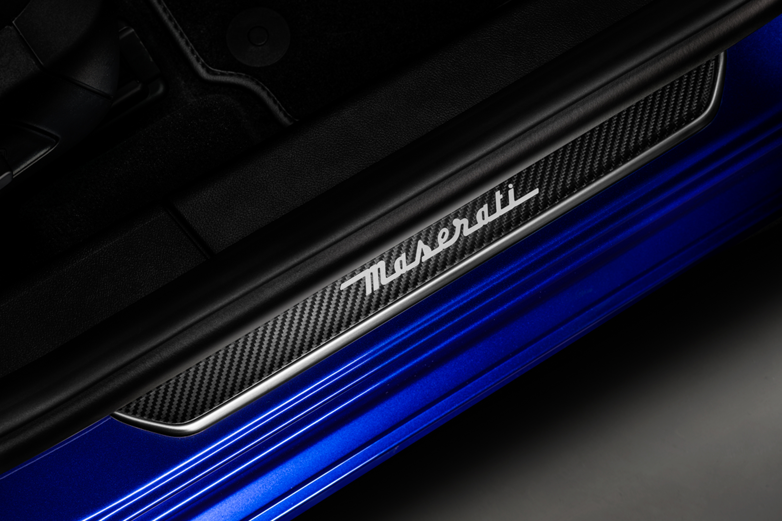 取自義大利文「黑」色涵意的 Nero 碳纖維套件,在外觀上忠實呈現碳纖維材質獨有的黑色編織紋路,尤其以兩側後視鏡外蓋、B 柱部分的大面積飾板,同時碳纖維尾翼也沒有缺席,不僅能修飾車尾線條、增添性能氣息,亦有助提昇高速巡航穩定性,細看更可發現在車門把手與輪圈蓋等處皆同樣換上碳纖維套件加以妝點,至於打開車門後才能親眼目睹,帶有 Maserati 品牌字樣的碳纖維迎賓踏板,則是車主專屬的視覺饗宴。