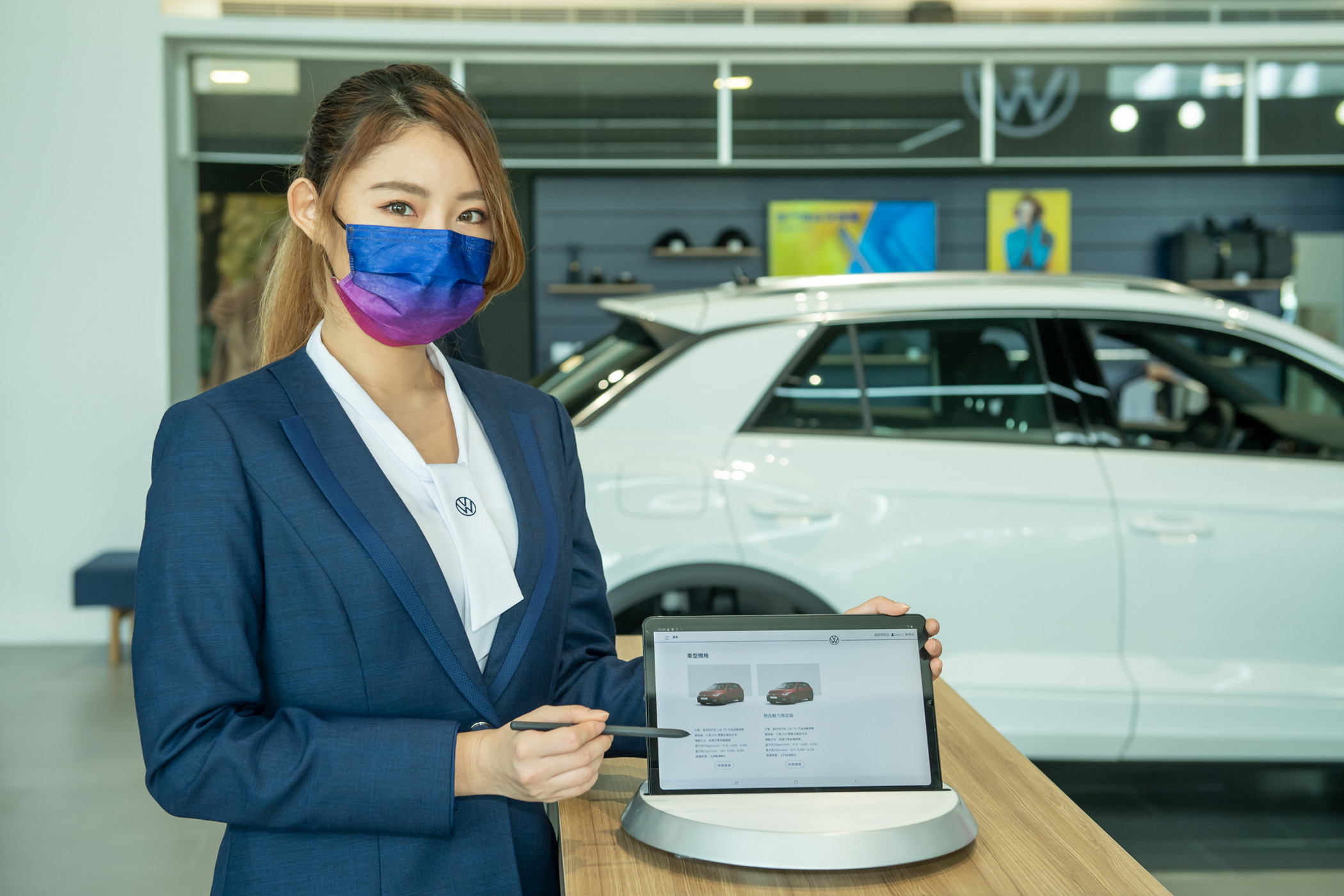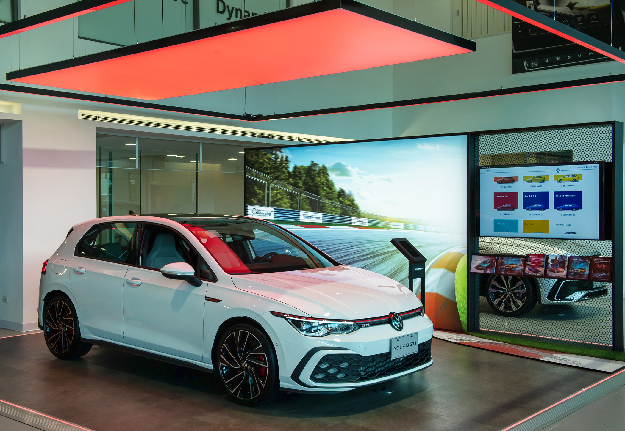全新設計的車輛展示區,根據各車款特色分為 City、Family、Performance、Premium 四大區域,消費者可輕鬆依照用車需求體驗適合車款,重點產品展示區則有可變換顏色的天幕和 LED 螢幕播放最新產品影片,如欲詳閱產品規格,僅需使用一旁的數位車輛規格立牌,即能完整瀏覽規格配備、各種車輛配件、車輛相關影片及最新銷售方案。在數位趨勢之下,Volkswagen 專業銷售顧問以平板電腦作為介紹工具,隨時提供消費者最新產品資訊,一目瞭然地獲得各式車款操作方式與新功能介紹影片。另外展示中心還設置獨立的選材洽談室,消費者可以近距離欣賞所有烤漆和座椅質料,並且運用中央螢幕直接看見愛車與配件實際搭配效果,在保有隱私的空間中打造專屬自我的 Volkswagen。此外,維修服務中心也設置電子看板顯示車輛保養進度,車主在享用精緻點心、休憩之餘,亦能隨時掌握愛車保養進度。