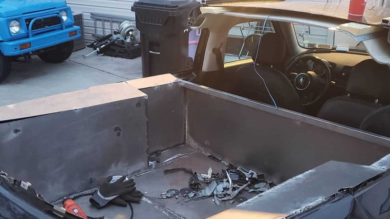 有位Mini俱樂部的網友回想起原廠曾實驗性將一輛Mini Cooper改裝成皮卡版概念車,便想將自己的Clubman改裝成皮卡式樣,於是找到一家名為Smyth Performance的車床製造商替自己的愛車生產專用的碳纖維車床,從這位網友提供的影片來看先是將Clubman的內裝全部拆除,之後便開始切削B柱之後的車頂結構並鑽出焊接點來安裝安全帶座與金屬隔版,並強化後斗周邊結構以確保車體仍保有一定強度,頭枕後方則採用Volkswagen Caddy的後窗,由於該車具備四倫傳動功能,最後還換上大尺寸越野胎、車頂置物架及呼吸管讓整體更符合皮卡的粗曠越野風。