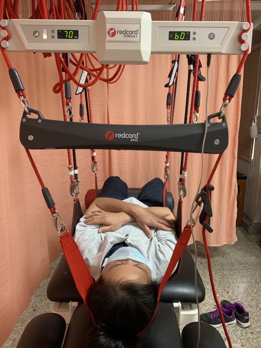 紅繩運動,全名為「紅繩懸吊系統」源於二次世界大戰以及小兒麻痺流行的年代,是利用4到5條繩子,將患者的肢體以多點懸吊的方式來進行訓練,透過擾動繩子,創造一種「不穩定」的狀態,激發身體自然而然取得「平衡」,因此可以活化到全身神經、肌肉。
