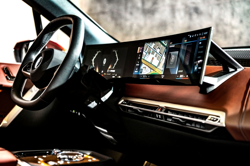 前衛俐落的車身線條,是全新BMW iX給予眾人的搶眼形象,而進入座艙所迎面而來的,更是BMW跨越傳統框架的無際創新,奠基於豪華與由電而生概念,導入由12.3吋虛擬數位儀錶結合14.9吋中控觸控螢幕所構成的全新開發一體式懸浮曲面螢幕,結合全新世代BMW iDrive 8.0使用者介面、車況抬頭顯示器、全新六角造型多功能方向盤、ConnectedDrive智慧互聯駕駛服務、RSU遠端軟體升級、無線智慧型手機整合系統、擴增實境導航與全新世代BMW智慧語音助理2.0。全新iDrive 8.0充滿藝術美感的圖像式設計,讓使用者介面更加直觀與個性化,還可針對虛擬數位儀錶模式進行切換,提供Drive駕馭、Focus專注與Gallery純粹三種模式供駕駛在不同行駛情境之下進行選擇;擴增實境導航可於14.9吋中控觸控螢幕顯示前方實際路況畫面,並透過圖像標示接下來即將轉往的方向,為駕駛大幅提升便利性與行車安全性;全新世代智慧語音助理2.0不僅能以更自然的語言邏輯進行溝通,更為其導入懸浮光球動畫,透過不同大小與亮度的呈現方式描繪出宛如真人般的面部表情與反應,展現更多情感與互動。