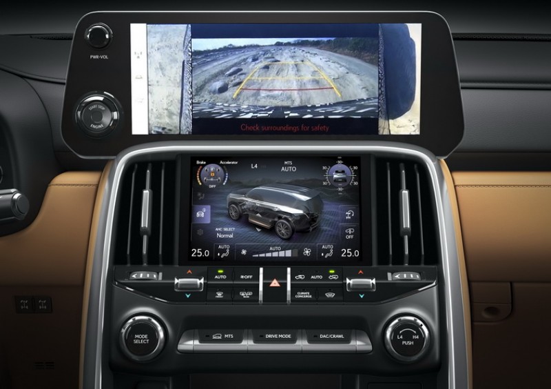 動力部分為一具可輸出409匹馬力的5.7升V6雙渦輪增壓引擎,比起前一代的3.5升引擎多了26匹馬力及103 Nm扭力,而最大扭力峰值控制在3,600轉,讓駕駛在低速越野狀態下能隨心所欲地掌握動力的輸出爆發時機,變速系統搭配的是10速變速箱,更多的檔位擁有更為平穩的加速質感與低速操控性,第10檔則可在高速狀態下減輕引擎負荷獲得寧靜的行車品質與更好的油耗表現;另外在採用新的TNGA-F平台後使其車重大幅降低200公斤,不僅對油耗大有助益也讓車身剛性提升了20%,新的多連桿系統與氣壓懸吊亦能有效提升整體的行路質感與操駕樂趣;標配的Lexus Safety System+ 2.5安全系統則包含全速域ACC、車道置中、車道偏移警示、轉向輔助、碰撞警告、自動煞停、行人偵測等功能,大改款LX配備如此豐富加上寬廣的車艙空間與強大動力作為後盾,說它是豪華的路上行宮一點也不為過。