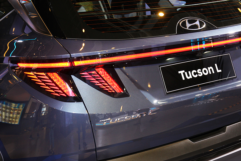 Tucson L 盡顯品牌「Sensuous Sportiness」設計語彙的感動與動感元素,彷若「VISION T」概念車前衛出世,根據集團副總裁SangYup Lee的說明:為了設計出有別於以往的車款,透過採用數位科技而不是傳統手繪來模擬出線條、表面、角度以及形狀,創造出前所未有且大膽美學。此運用數位科技的參數化動感設計手法,創造出世人驚豔的大膽身型線條,隱藏式LED日行燈組、LED頭燈相容氣壩造型以及充滿動感肌理Z車身線條,乃至於豪華車款擅用的貫穿式車尾設計,都讓Tucson L視覺張力強烈深刻。
