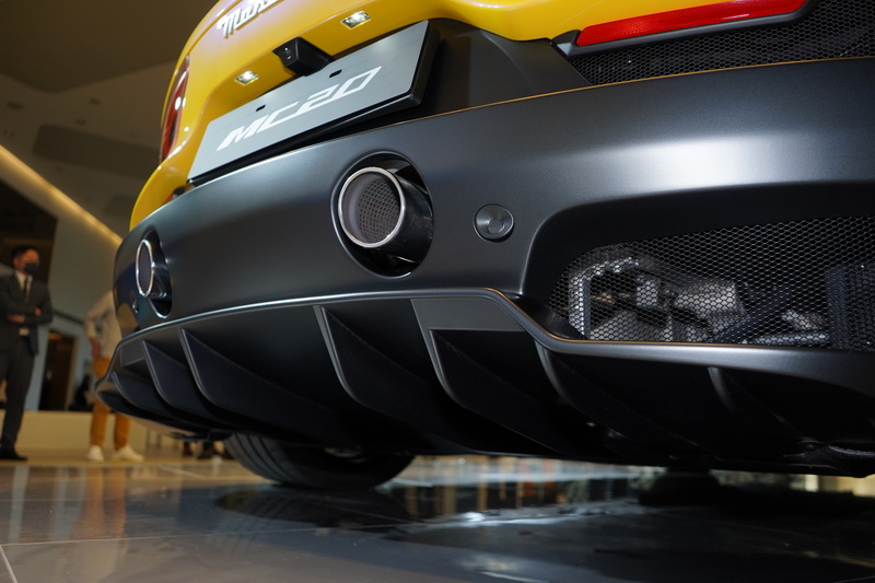 MC20近乎完美的造型設計,絲毫不引響身為超跑的賽道實力;歷經超過2000小時的風洞測試,以及1000次以上的CFD流體力學模擬,在完全沒有任何活動式空力套件或大型尾翼的前提下,便擁有低於0.38Cd的風阻係數;更藉由將空氣導入車底,利用地面效應產生強大下壓力,進一步穩定MC20的動態表現。