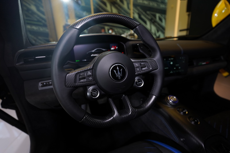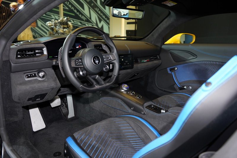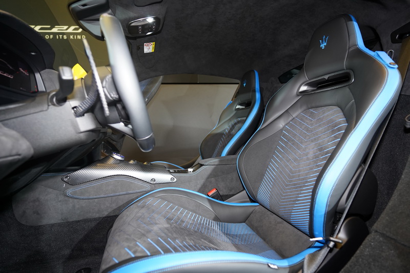 MC20在內裝部分採用極具戰鬥氛圍的駕駛導向設計,由消光碳纖維、黑色麂皮和頂級皮革構築而成:碳纖維三幅式多功能競技方向盤整合引擎點火按鈕及獨立的彈射起步按鈕,並配備Maserati經典的大型固定式換檔撥片;中央鞍座以消光碳纖維包覆,僅呈現駕馭車輛時最需要的重要功能按鈕,其中包含全新設計的駕駛模式旋鈕,讓駕駛人可於「GT」道路模式、「Sport」運動模式、「Corsa」賽道模式 (支援彈射起步)、「Wet」濕滑路面模式、以及「ESC-Off」等多種模式中進行選擇,一坐進車室並能全神貫注於極限操駕之中。