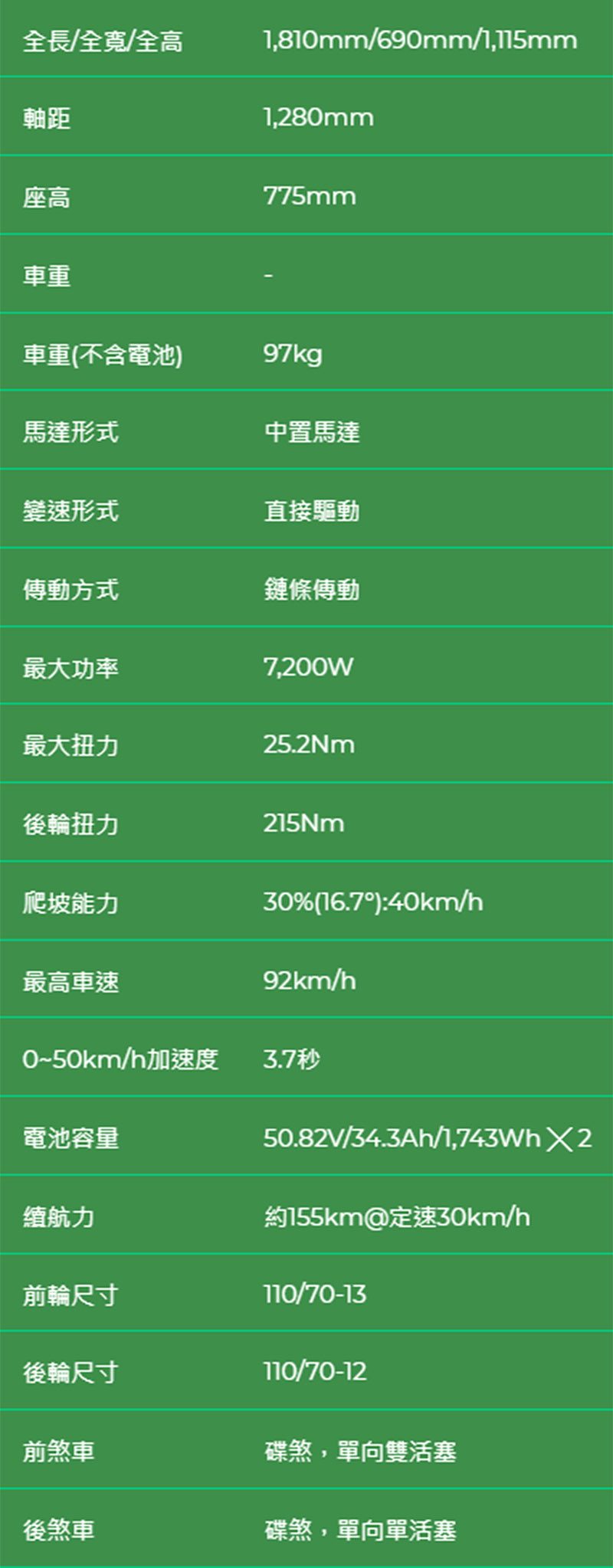 S7與S7R都是採用雙電池配置,以定速巡航最大續航力約可達155km。