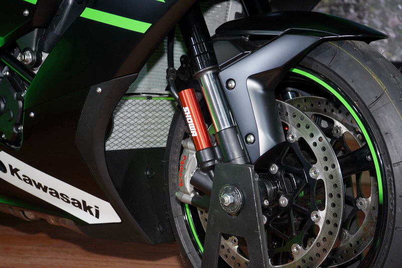 變速系統部分換上閘式變速箱,可因應不同路況進行快速調整,另外還配置有滑動離合器與快排系統,更快的換檔機制讓騎士能更迅速的掌握進出彎動態,搭配上SHOWA的43mm倒立式前叉與Brembo輻射卡鉗及330mm浮動碟盤的協助下,無論任何情況皆能有效地降低車速並迅速穩定車身;由於日益嚴格的環保法規下使得公升級重車的檢驗有著不小難度,因此台崎也正如火如荼的在驗車程序上持續努力,希望讓這輛性能標桿盡快的與喜愛Kawasaki的車迷朋友見面。