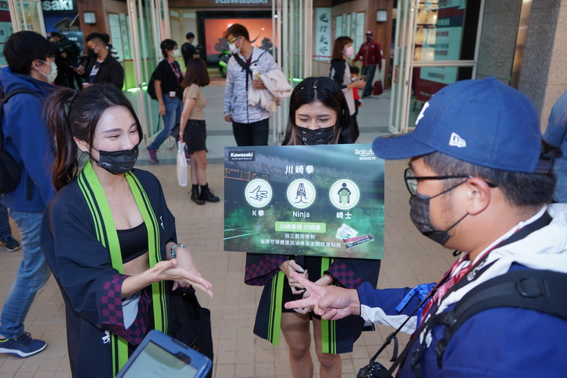 這次Kawasaki為了主題日活動還用心的將場外攤位設計的美輪美奐,一如來到了日本祭典會場相當熱鬧,除了專屬戶外展車區有ZX-6R及Ninja 400坐鎮,還有各式攤位提供車迷與球迷們一起同樂,不同攤位可透過掃描QR Code進行小遊戲換取精美禮品,另外還有手臂彩繪、崎願卡、川崎拳等活動規劃炒熱現場氣氛,最受球迷喜愛的RAKUTEN GIRLS與球員們也換上主題日制服替活動帶入最高潮,Kawasaki也藉由本次主題日活動帶給車迷與球迷耳目一新的宣傳方式,進而讓車迷變球迷、球迷變車迷一同認識重機愛上重機生活的美好。