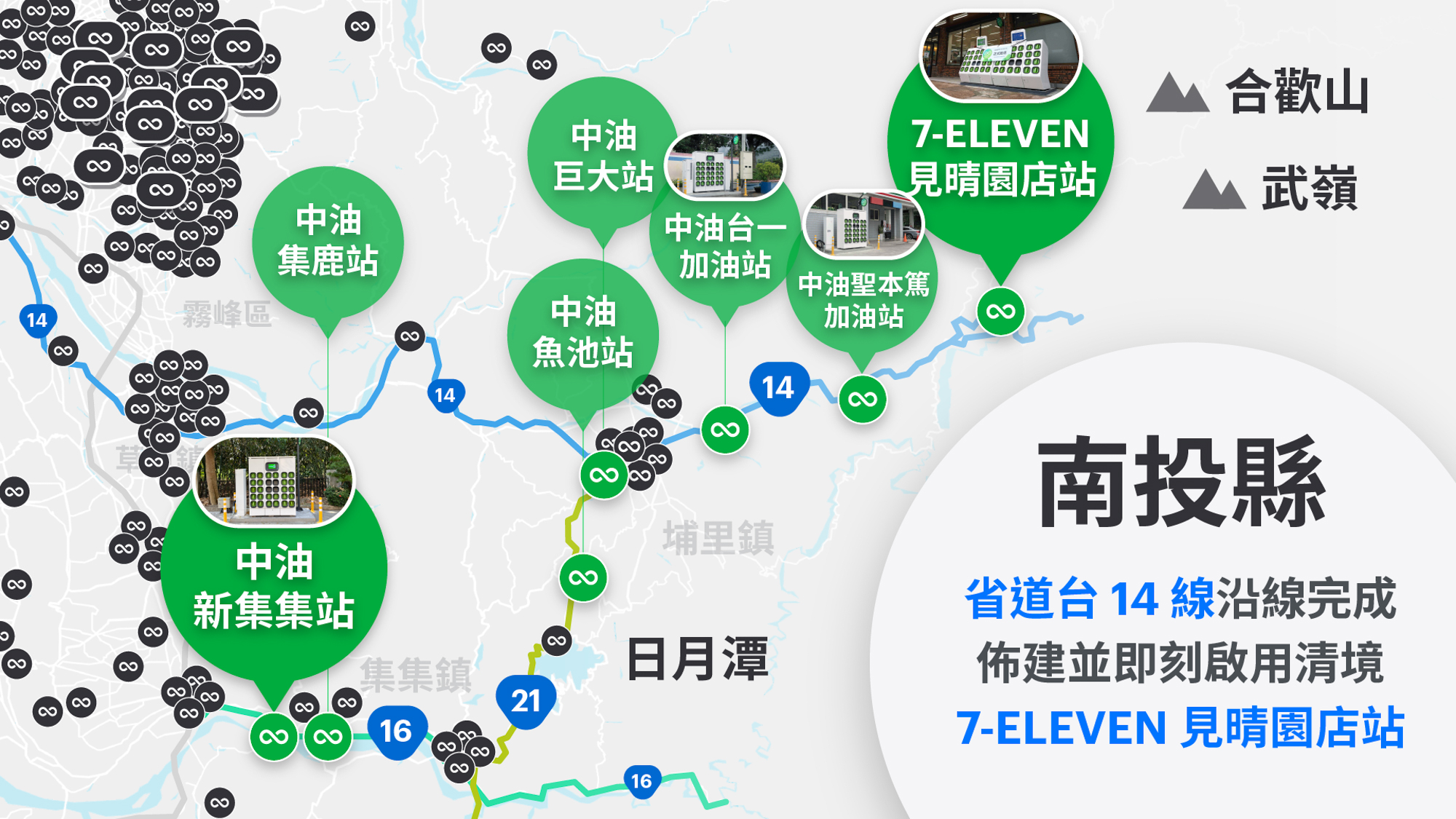 【通往南投日月潭風景區周邊道路 Gogoro Network 電池交換站即將開通列表】