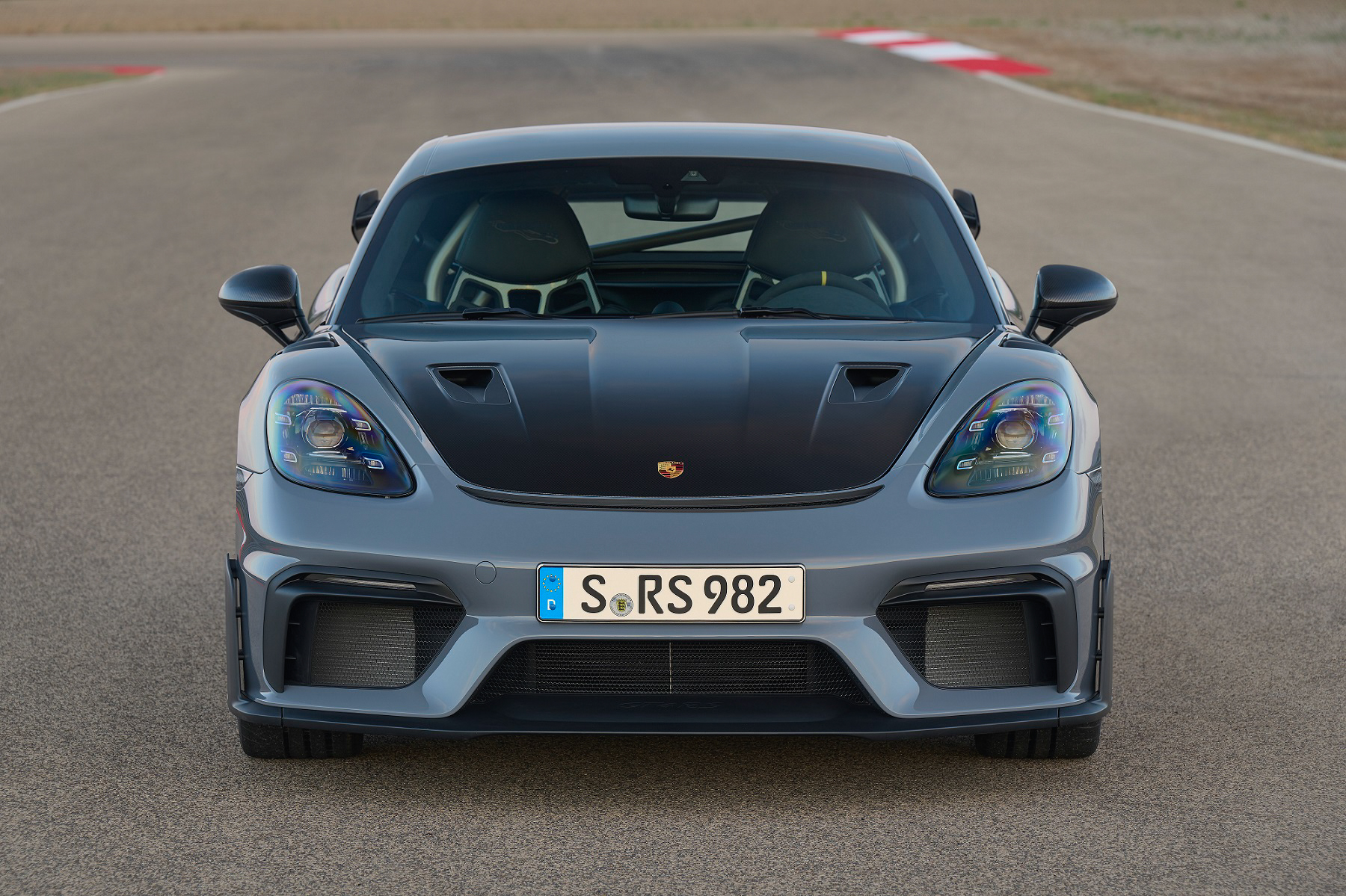 718 Cayman GT4 RS 外觀設計的獨特元素包含了全新擾流尾翼搭配倒勾式 (Swan Neck) 連桿和鋁合金側翼支架。如此高效能的側翼設計源自保時捷 911 RSR GT 賽車,首次應用於保時捷 911 GT3 系列量產車中。結合與 718 Cayman 相比低 30 mm的行駛高度、前輪拱上引人注目的散熱排氣口、用於優化空力表現的車身底板與後下擾流板,可調節式前擴散器和帶有環繞式側葉片的全新設計前擾流板,使 GT4 RS 在供賽道使用的性能模式中,產生相較 GT4 增加約 25% 下的壓力。