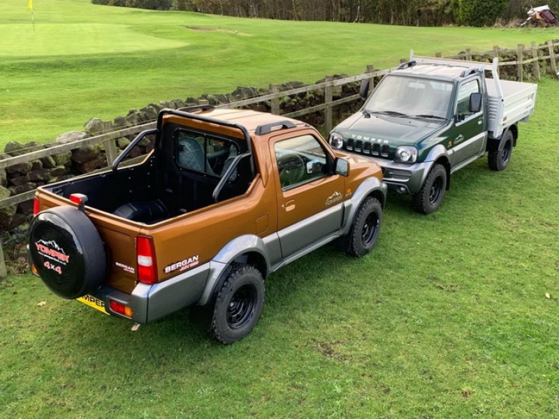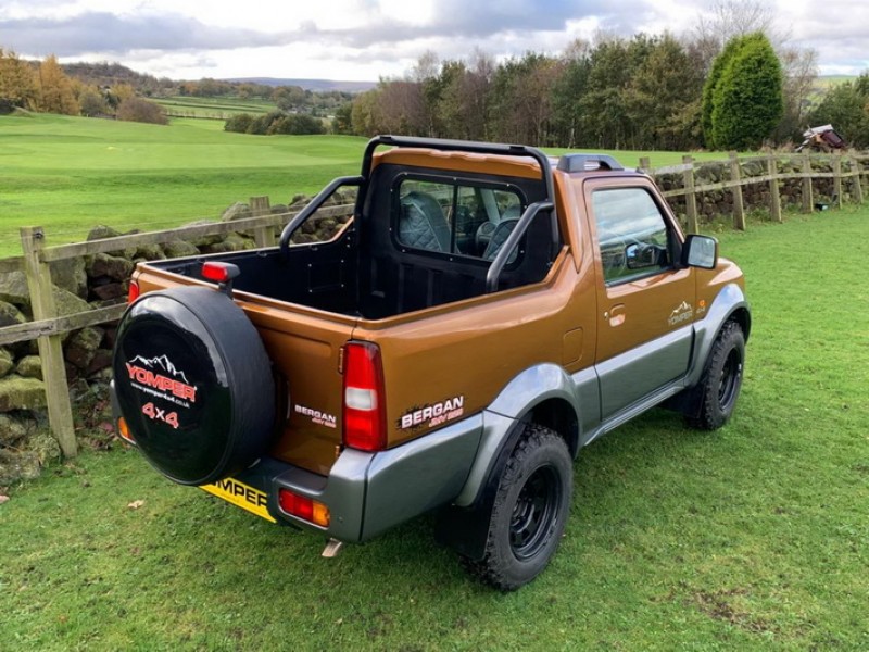 將Jimny改為貨卡雖非改裝市場首例,但品牌執行長表示這款Yomper 4×4並非拼裝車,而是重新設計車體結構並升級底盤而來,基本上可以用全新車款的角度定位它,Yomper 4×4依不同使用需求分為Bergan及Commercial兩種車型,Bergan的軸距為571.5公分Commercial的軸距為698.5公分,兩款皆比起標準版的Jimny還長上不少,且同樣為雙人座車艙搭配車床架的設定,在外觀上Bergan的後車床是採與車身同樣的Two-Tone配色,較適合一般家庭越野露營使用,Commercial則採較耐用的金屬車床比較適合農用設定,兩者皆配置越野胎與擋泥板並在引擎蓋與車側貼有品牌貼紙。