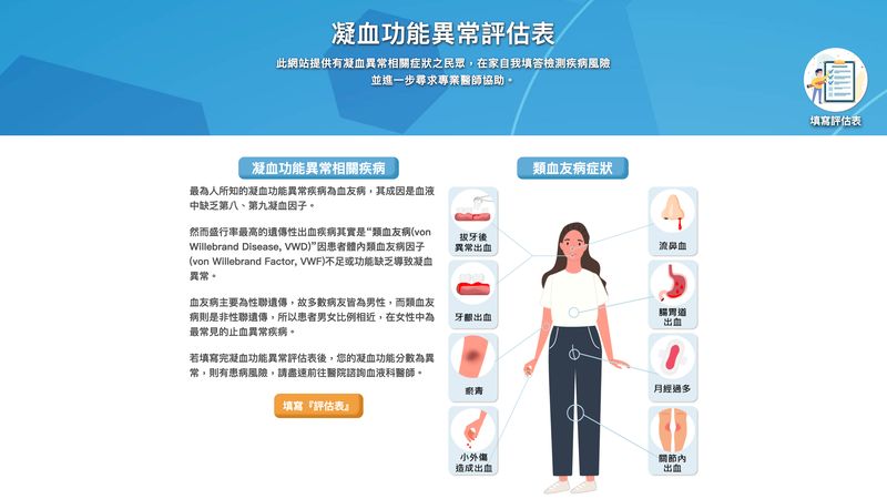 ▲線上凝血功能異常評估表可幫助及早察覺異常