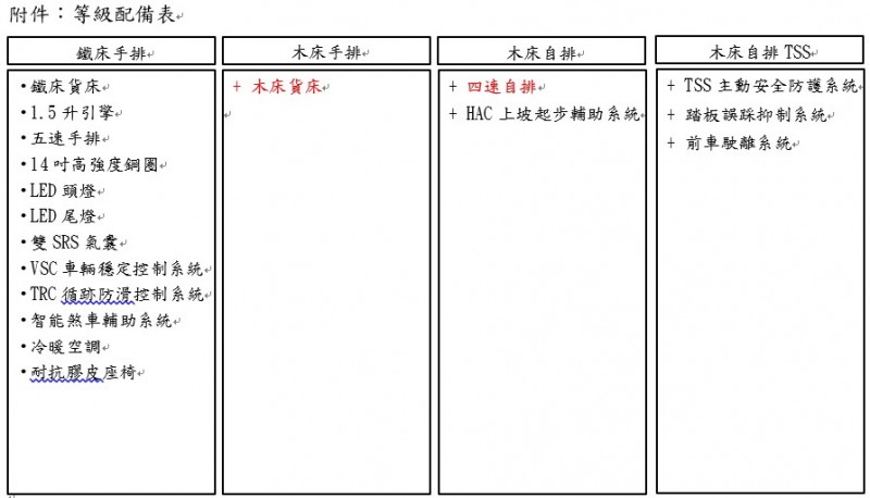 註3:最高載重量係指鐵床手排等級,由國瑞汽車股份有限公司測試取得,數值為標準值,未含容許公差。