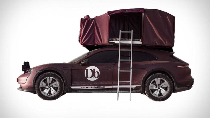 Discoverberry Bundle這次替Taycan Cross Turismo打造了一系列專屬的露營用品,包含有2,385L的車頂帳、60L的滾輪行李箱、30L的後背包及露營配件,搭配車頭前方的探照燈組感覺就像是準備參加越野賽一般,車身配色採用特殊的消光勃根地色調,這款特製車是以Turbo S等級加以改裝,加上上述這些林林總總的配件後及車子本身的最終價格為25萬美金,前面提到的滾輪行李箱其價格為279美金,後背包為209美金,最貴的就屬車頂帳篷與露營配件組。