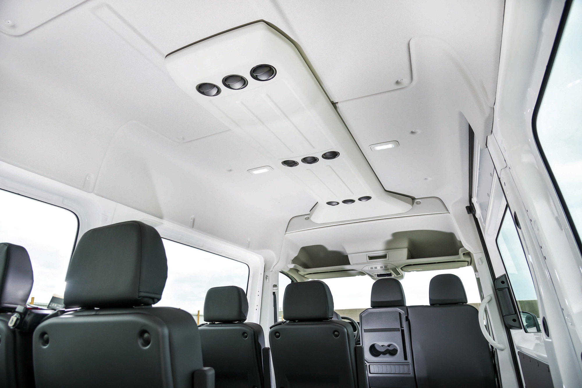全新 Crafter 九人座客車駕駛艙上方更設計有車頂置物空間,讓駕駛以及前座乘客更方便收納隨身物品。