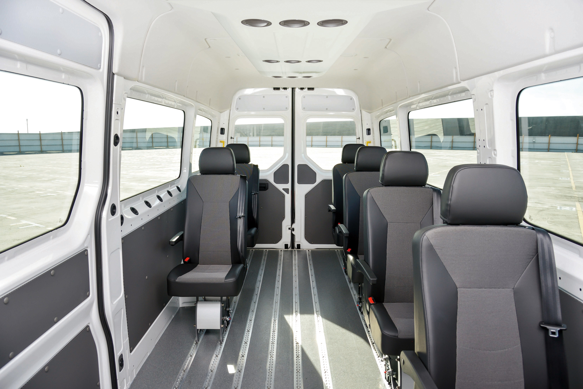 與先前引進的 Crafter Van 最大不同,全新 Crafter 九人座客車改搭兩側大面積固定式車窗,為乘客帶來更多旅途中的風景。中軸平頂車型的車長 5,986mm、車寬 2,040mm、車高 2,355mm,搭配 3,640mm 軸距,可以創造長 3,201mm、寬 1,832mm、高1 ,726mm 的後艙空間。長軸高頂車型則是把尺寸放大到車長 6,836mm、車寬 2,040mm、車高 2,590mm 水準,軸距更加長到 4,490mm,能夠帶來長 4,051mm、寬 1,832mm、高 1,961mm 的後艙空間。縱觀所有 3.5 噸以下廂式客車,全新 Crafter 九人座客車擁有最寬敞、高挑的車室空間,即便身高一米九的成年男子在座艙中也能輕鬆行走。