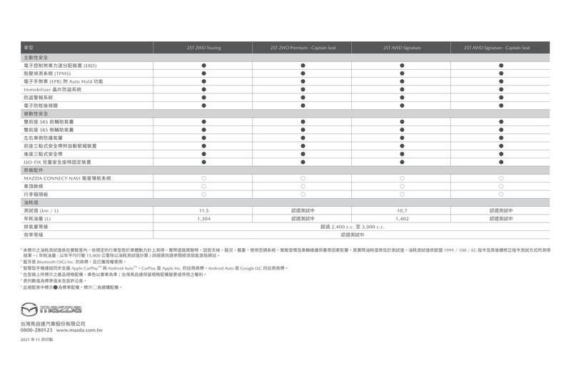 台灣馬自達於今(30)日推出CX-9 Captain Seat,導入全新第二排獨立雙座旗艦座椅,方向盤及雙前座/第二排座椅加熱裝置。Mazda CX-9 Captain Seat透過全新命名原則接軌全球市場車系編成,正式售價分別為: 25T 2WD Touring 149.9萬;25T 2WD Premium-Captain Seat 176.9萬;25T AWD Signature 188.5萬;25T AWD Signature Captain Seat 192.9萬,預計將於2月起開始陸續交車。