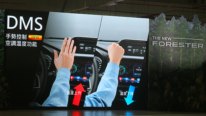 Forester也搭載了同級唯一的「DMS(Driver Monitoring System)智能駕駛警示系統」,透過紅外線鏡頭及臉部識別技術,監測駕駛者眼睛及臉部輪廓線,匯聚個人化智慧臉部辨識、專注力偵測警示以及疲勞駕駛偵測警示三大功能,Forester更新增了「手勢控制空調溫度」功能,可有效減少駕駛者目光離開車前的機會,並隨時監測駕駛人行車狀態,適時給予駕駛者警示聲提醒,為所有用路人的行車安全把關,實現安心愉悅的駕馭體驗。