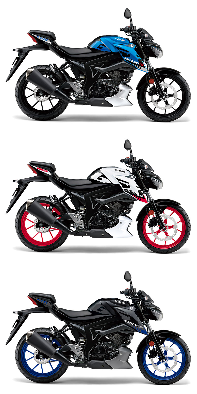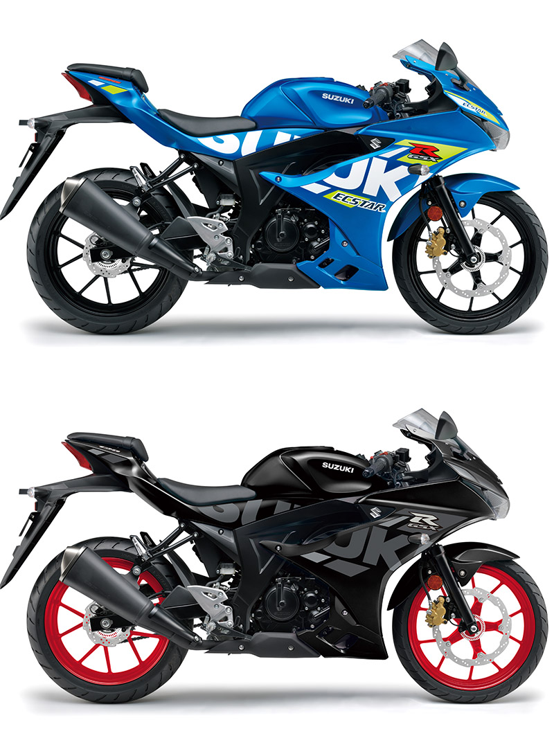 GSX-S 125搭載與GSX-S125相同DOHC單缸引擎,並提供藍、黑、銀三款主要配色,其中黑色塗裝將搭配藍色輪圈,銀色塗裝則會搭配紅色輪圈。兩款新車都會採用更緊湊的LCD儀錶板與Suzuki單鍵啟動系統,另外,GSX-R125還配有Keyless系統。