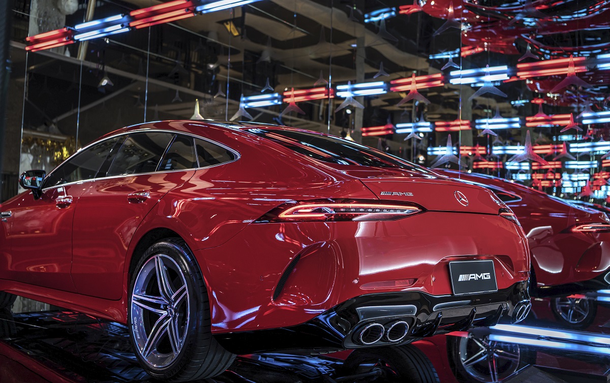 Mercedes-AMG GT 4-Door Coupé 43 4MATIC+ 限時首現 Mercedes-Benz SPACE 品牌概念空間,以強大熱血的 3.0 升 AMG 直列六缸引擎,結合 48V 高效能輕油電系統及電子渦輪技術,與全新調校 AMG RIDE CONTROL+ 懸吊系統,建議售價 567 萬元起。延續第一階段的 MAYBACH 車款,同步揭開為期一個半月的 AMG 展期。