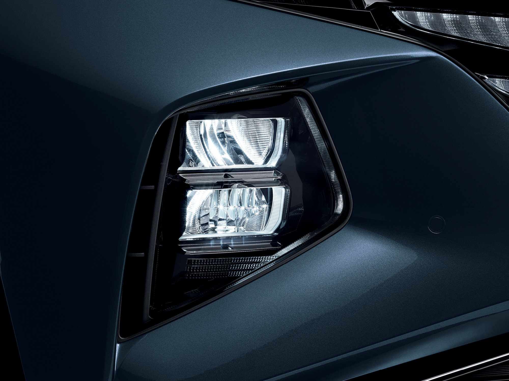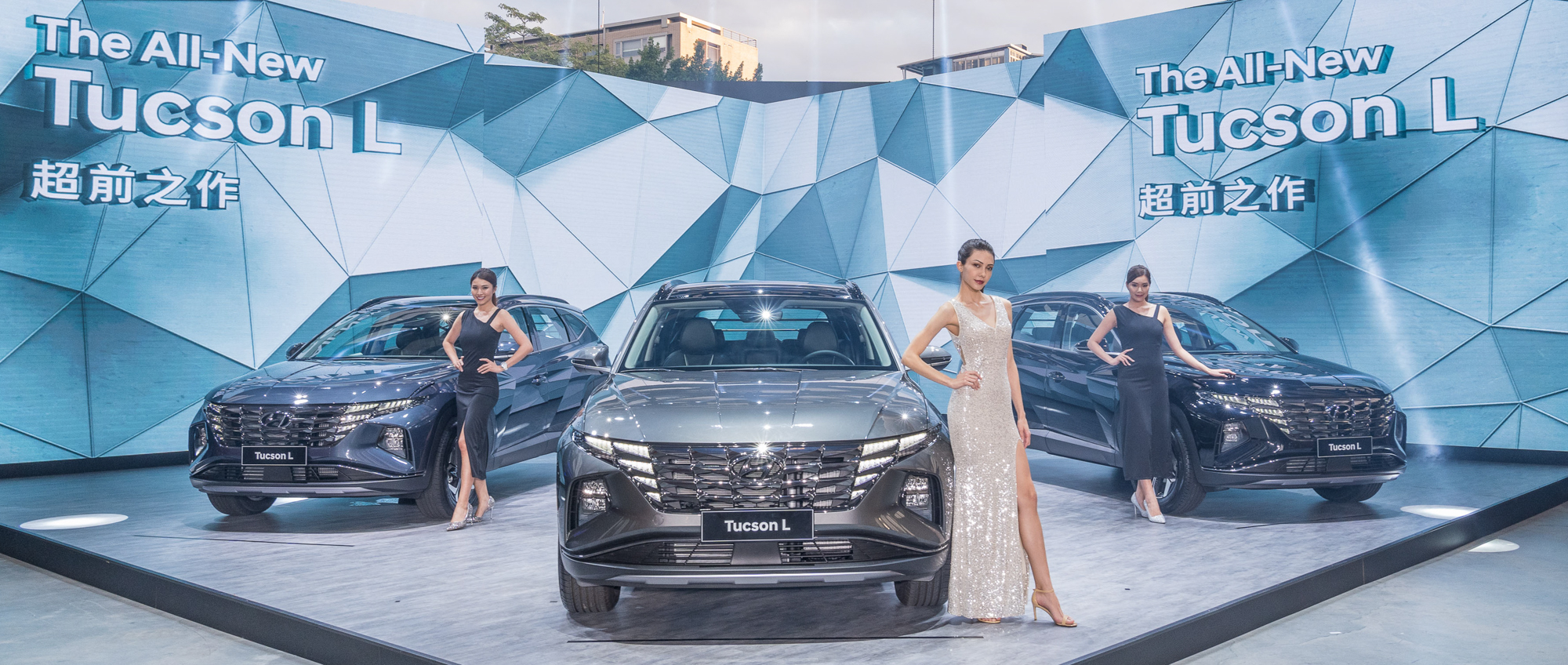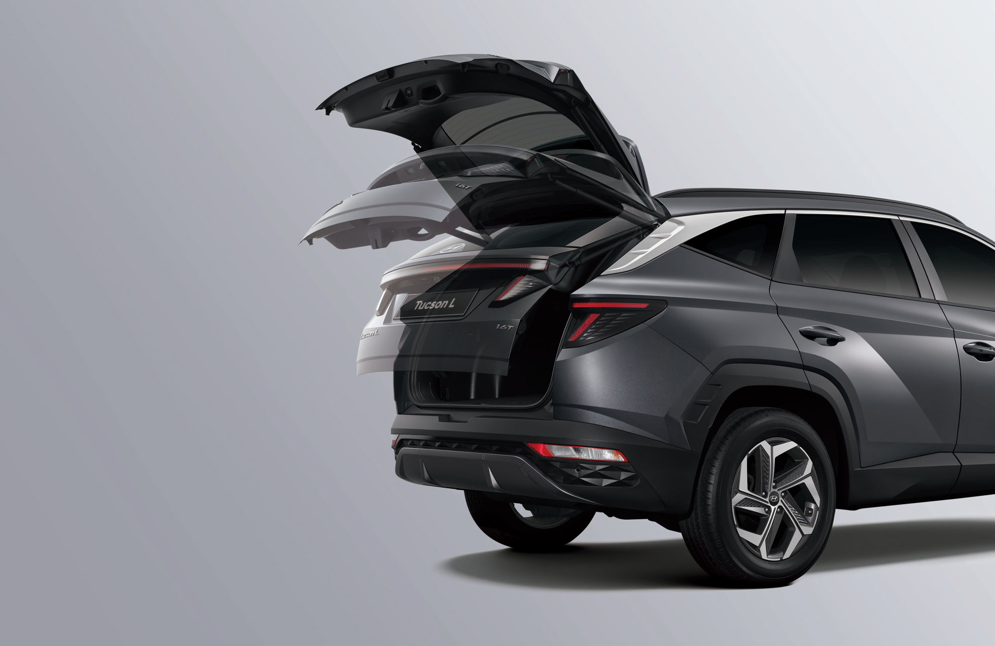 全新 Tucson L 勾勒出新時代休旅動感外貌,品牌設計團隊首度使用數位科技參數化模擬出立體線條、表面、角度以及形狀,最先是科技感十足的分離式頭燈搭配隱藏式鑽石 LED 日行燈組,一體式水箱護罩採用幾何鑽石黑化,刻劃出前衛未來感;車側數道幾何線條有如Z型折線,雕塑肌力動感身形,搭配 18 吋幾何鋁圈;車尾設計精髓用醒目貫穿式光條銜接 LED 羽翼尾燈組,加上隱藏式雨刷與內嵌 LOGO,設計細節巧思讓人驚艷。