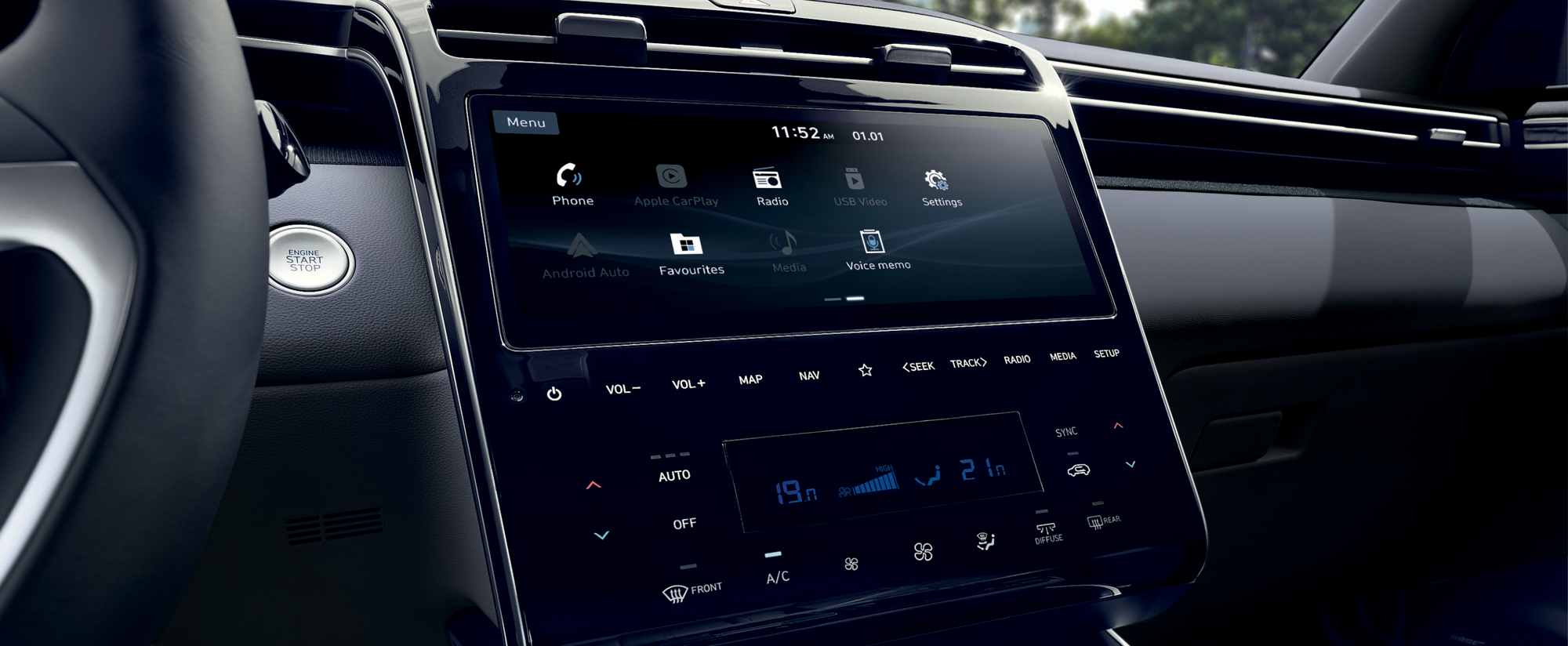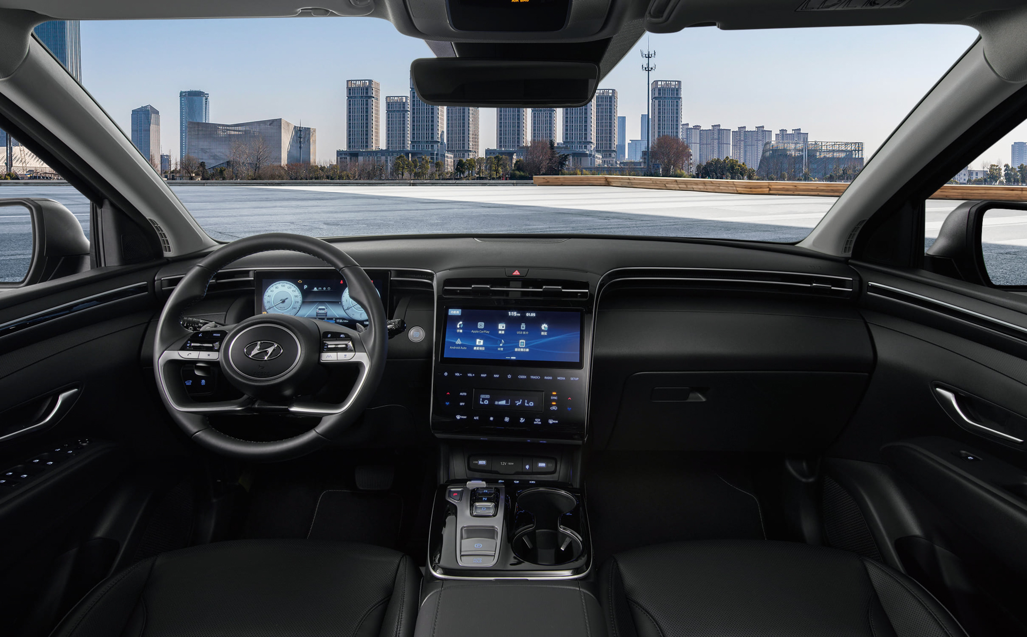 座艙室內的人因數位化介面設計,飛瀑式造型中控台營造出前座開闊平整的視野,映入駕駛眼簾的 10.25 吋數位儀表採用無邊框式流線設計和專屬防眩光塗層科技;另搭載相比同級車最大尺寸的全新 10.25 吋觸控多媒體系統,同時整合數位多媒體功能與空調。首度出現無直流風機艙空調陳設,透過隱藏式多點出風口設計,不僅讓車艙帶有自然微風效果,更是讓出風口噪音值降低;天橋式鞍座及 SBW 電子線傳排檔設計,皆是Hyundai新世代車款設計。此外,全新 Tucson L 搭載遠端引擎遙控啟閉系統,透過 Smart Key 智慧鑰匙可以在上車前遠端發動引擎,預先開啟恆溫空調,讓車主進入車內即可展開舒適旅程。