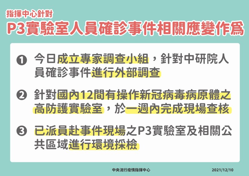 資料來源:健康醫療網 病毒外洩? 中研院P3實驗室一員工確診