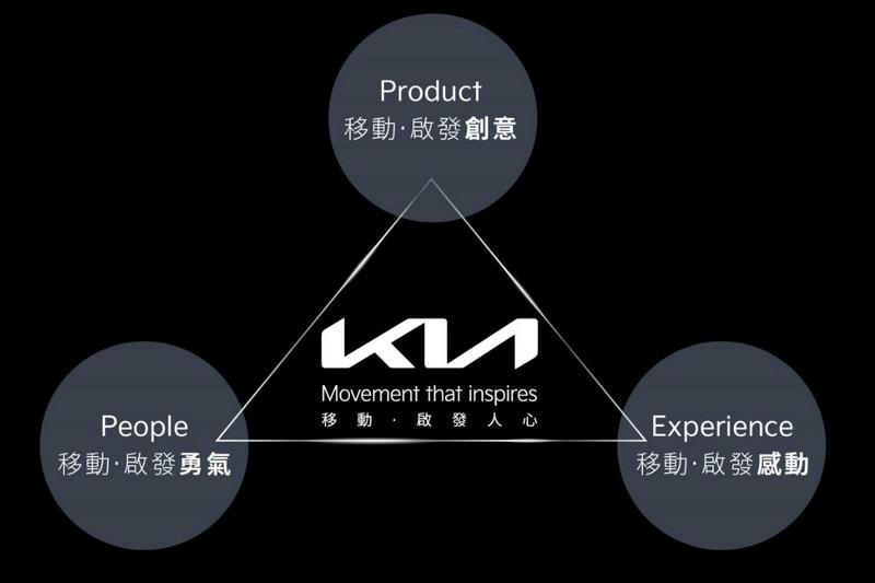除了透過新世代創新產品的導入,與消費者感動體驗的升級外,邁入全新品牌紀元的一切所有核心與最重要的根本,其實還是源自「人」。移動,並大膽勇敢地採取行動,不僅是Kia的核心思想,更將成為所有Kia銷售與服務同仁的信仰與文化,而這將讓所有人持續前進、努力不懈並持續改善,同時啟發創意與感動,讓Kia不斷前行。Kia將以客戶為出發點,以大膽前行的勇氣,和懷抱夢想且積極樂觀進取的人們交流,激盪起前所未見的創意與想像力,讓認同Kia品牌價值觀的人產生共鳴,並讓Kia推動著人們一起勇敢前進,迎向全新想法和未知的領域。