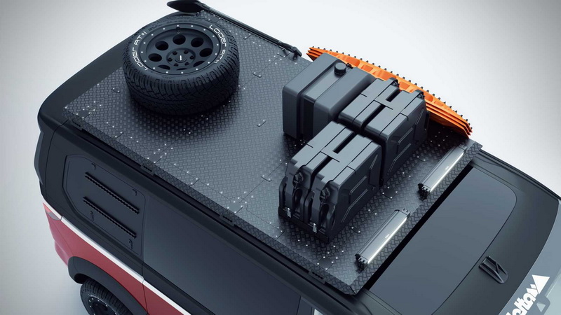 其實這款改裝版的Delta 4×4 Multivan目前仍處概念階段,但基本上仍以MBQ底盤作為基礎加以發揮,首先換上了Loder 255/55R18 A/T的越野胎,並將原廠避震置換為Bilstein系統及Eibach彈簧,因此離地間距比起原廠還高出有40 mm,如此一來也增加了Multivan征服惡劣路況的能力,另外輪拱邊緣也換上了更為厚實的防滾石塑料材質,並在前保桿處加掛一對PIAA投射燈,車頂也附掛上車頂架及LED照明燈,不僅有效提升乘載能力,也讓這款廂車增添更濃郁的越野氣息。