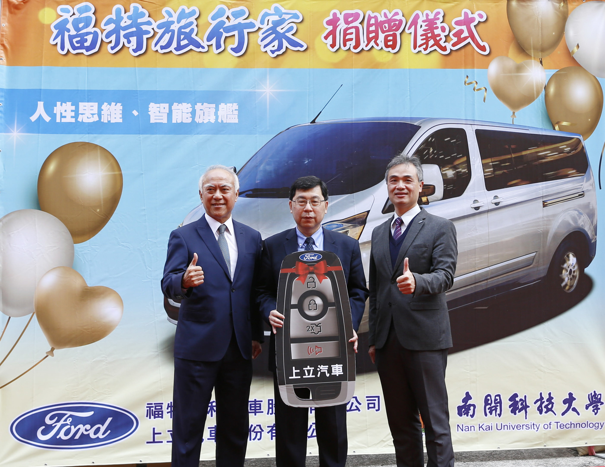 南開科技大學校長許聰鑫也表示:「長照和遠距醫療照護是台灣社會發展趨勢,福特旅行家車款服務於許多長照機構或遠距醫療團體,透過本次的捐贈,學生將有機會在課程中實際操作此類廂型車的維修保養,實屬難得,也為學生奠定良好的基礎,未來投入職場時更能發揮所長,將自己的所學貢獻於社會!」