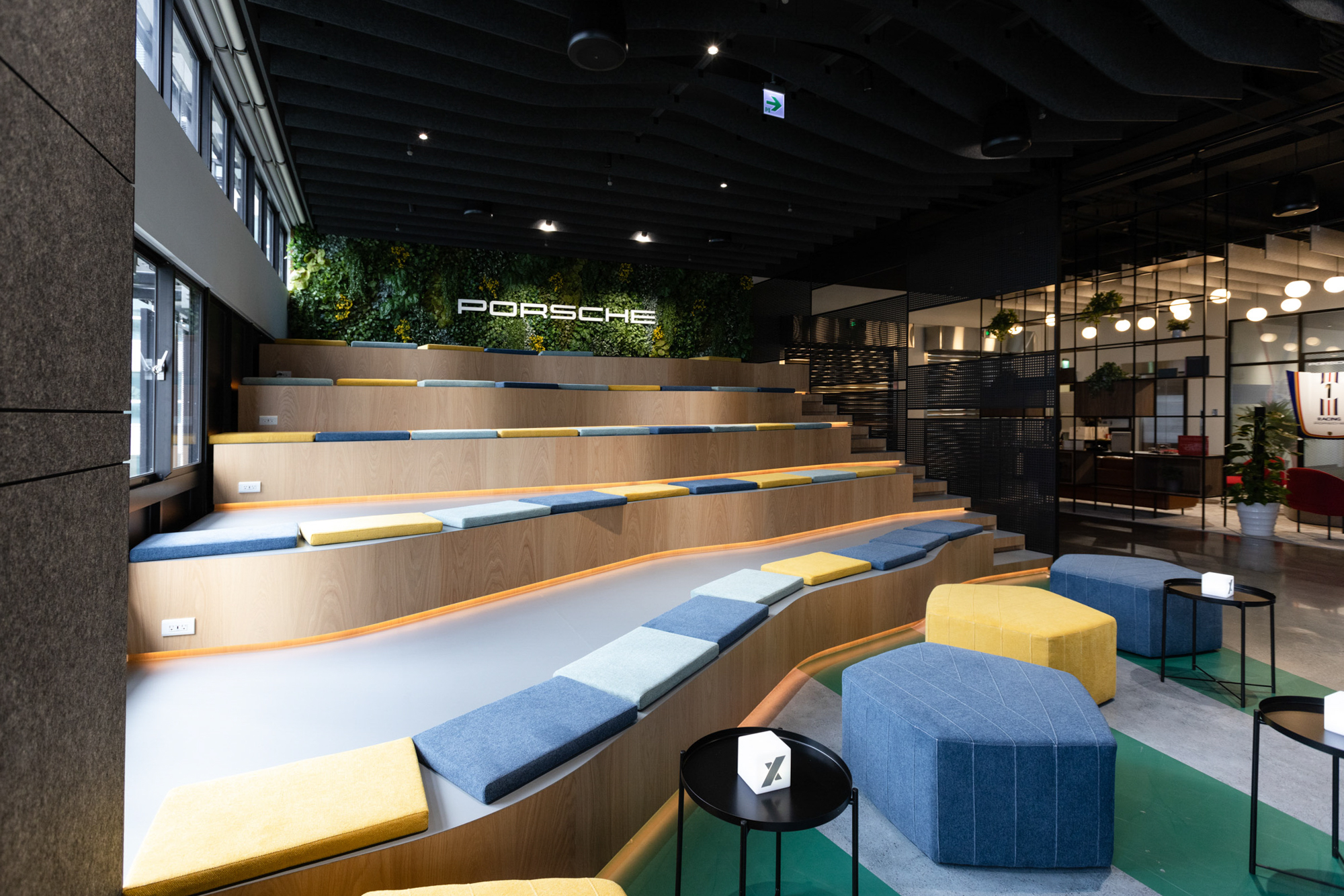台灣保時捷人才卓越中心以創新為特點,多功能用途、彈性使用為場地設計主軸,舉辦各式各樣規模的培訓、活動、會議或是工作坊,亦可提供給合作夥伴及外部單位靈活運用,如同一座激盪想法的競技場。嶄新的訓練中心配備數位白板、內建音響系統以及虛擬實境科技配備等先進設備,使員工與受訓人員能以更高效率學習。保時捷台灣人才卓越中心設有舒適的休息區域,木質裝飾與現代感色調營造出獨特而溫馨的氛圍。Porsche Arena 側面牆上則刻有台灣五大山脈之名,各自象徵著此開放教學空間中不同的層次與文化意涵。毋庸置疑地,以上特點皆凸顯了台灣保時捷人才卓越中心的空間設計結合「社群」的概念,並在現代化的空間中延續著保時捷的傳統。「一開始,我四處尋覓卻遍尋不著符合我夢想中的車,於是我決定親自打造一輛。」掛置於牆上的 Ferry Porsche 名言,象徵了保時捷品牌精神。