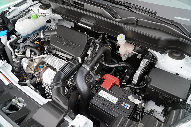 接下來就進入改款重點,就是換裝48V輕油電混合動力系統,該套系統與Swift Sport搭載的相同,以1.4升Boosterjet渦輪增壓引擎,搭配48V ISG 整合式啟動馬達發電機所組成,最大馬力為129.2PS./5,500rpm,最大扭力為23.9kgm/2,000rpm,而輔助馬達則會依照鋰電池電量與行駛狀態,予以動力輔助,最大可輸出10Kw之功率與53Nm之扭力,並且搭配六速手自排變速系統。