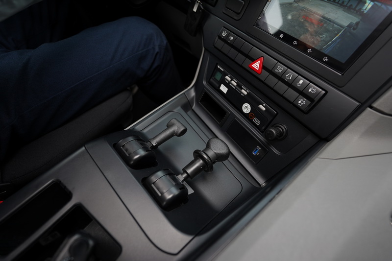 此外,FUSO Super Great六期內裝亦全新改款,海灣造型中控台提供更人性化的駕駛環境,使不同身形的駕駛皆能輕鬆觸及每一個中控按鈕,讓行駛更靈活。六期車同時提供3,200mm(標準)及3,320mm(高頂)兩種車高選擇,新增標準車頂的門把離地僅183公分高,讓女性駕駛也能輕鬆進入駕駛艙。全車採用輕量、耐久且高強度的超級大樑,展現強韌的底盤性能,為因應各種載貨需求,並搭配適用於各種道路條件的鋼板懸吊,六期更新增氣墊式後懸吊車型(四顆),載運易碎及高精密商品時行車更穩定。