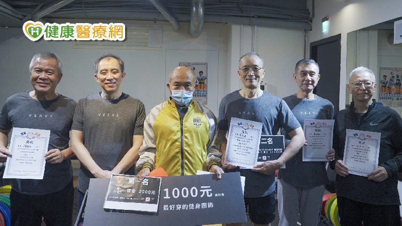 ▲60~69歲男子組得獎合照,黃衣者為貢丸阿伯。(圖/練健康提供)