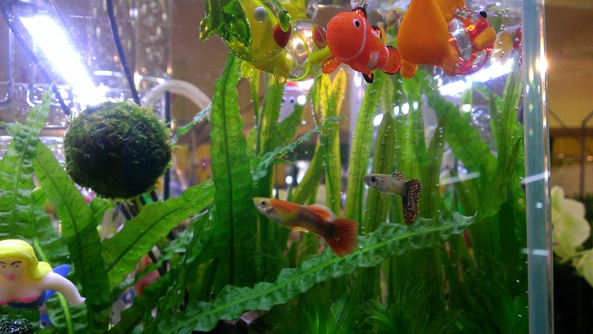 記得底砂要選擇不會傷到孔雀魚的材料較為理想。