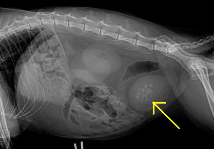X光明顯看到膀胱當中有結石(取自http://exclusivelycats.blogspot.tw/)