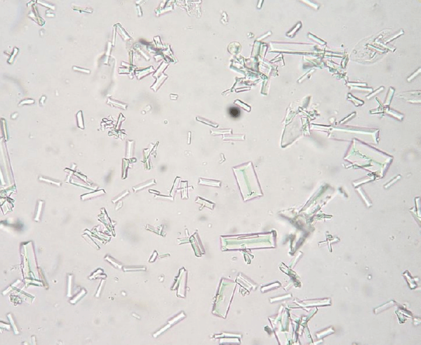 顯微鏡下尿液結晶體(取自http://exclusivelycats.blogspot.tw/)